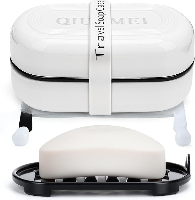 Travel Soap Box,soap Bar Holder Dish Container Case with Soap Bag & Silicone Band,Strong Sealing Leak Proof Portable,Best for Bathroom/Camping/Gym/Business Trip (White)