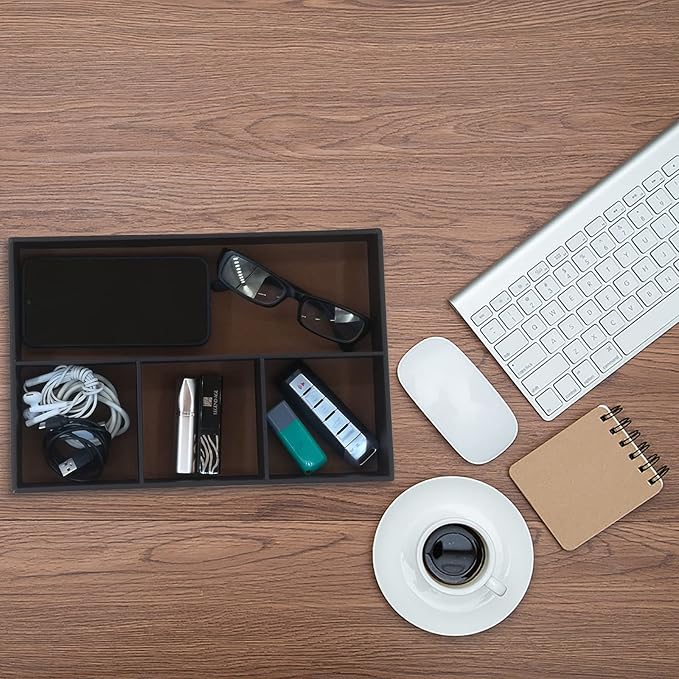 - [Perfect design] 4 compartments, better classification and protection of accessories. The right size will not take up your extra space. Therefore, you don’t need to waste a lot of time searching for misplaced items. Make your space more tidy and orderly. The perfect daily tray, suitable for your desk, bedside table, dressing table, entrance hall, side table, etc.