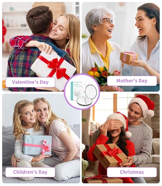 WOBSION Travel Compact Mirror,Portable 1x/10x LED Makeup Mirror with Magnification,Handheld 2-Sided Pocket Mirror, 3.5in Small Mirror for Purse,Handbag,Gift,Black