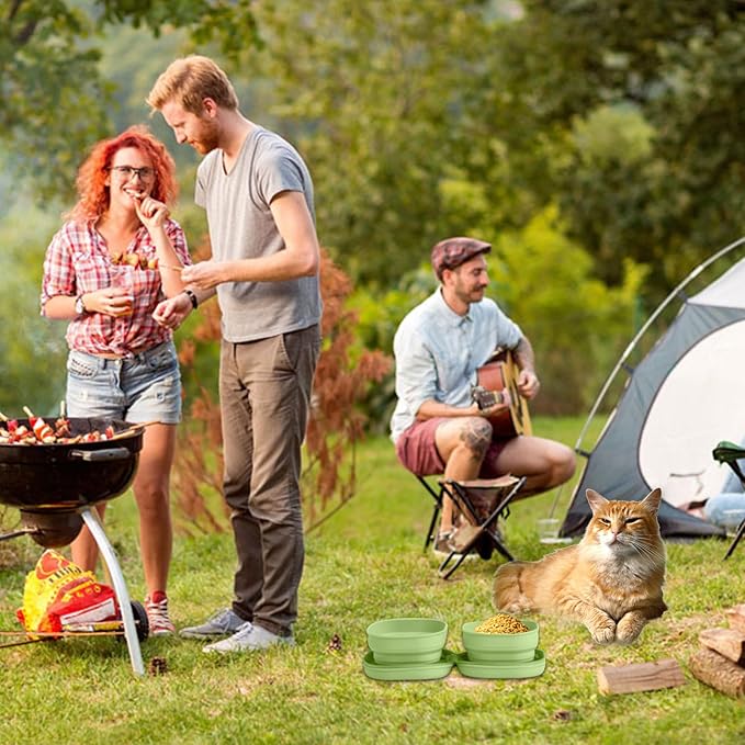 - 【Twin Bowls & Foldable】: Two bowls together, just bring one when going out, with water on one side and food on the other. Foldable when not in use, no need to worry about dust.