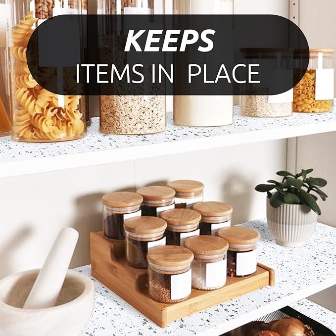 - ๐PVC Material - These shelf liners are made by PVC material which is non-adhesive & non-slip. Non-adhesive drawer liner is reducing slip and bunch in your drawers or cabinet shelves, it will keep both the liner in place on surface s, as well as helps prevent items from moving.