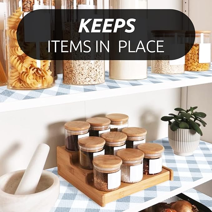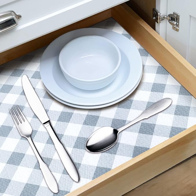 RAY STAR 18X96 Inch Shelf Liner for Kitchen Cabinets, Non-Adhesive Cabinet Liner Washable, PVC Drawer Liner for Dresser Non-Slip Bathroom (Plaid)(4 Roll)