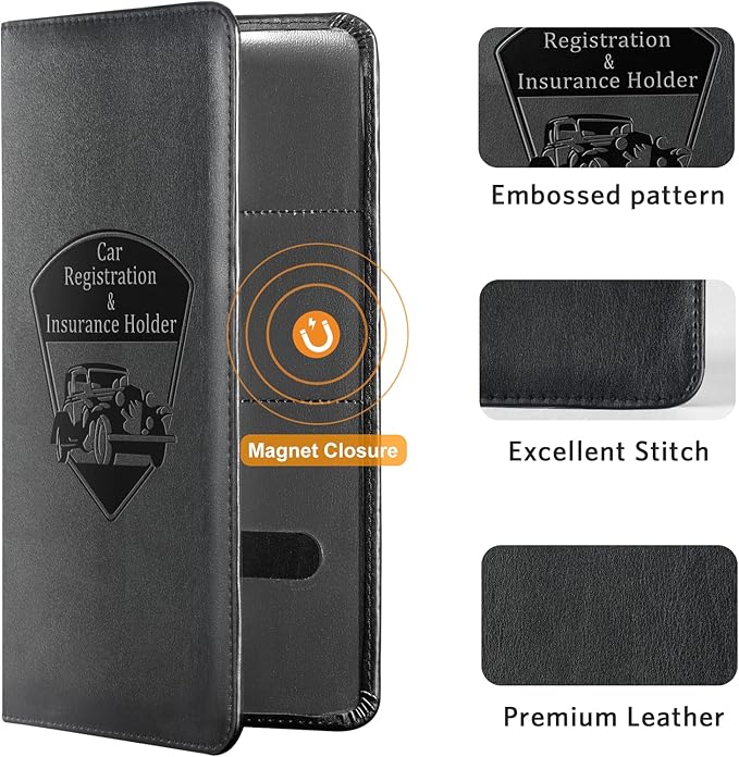 - MAGNETIC CLOSURE: Keep your car files well protected and closed like a breeze with strong built-in magnets.