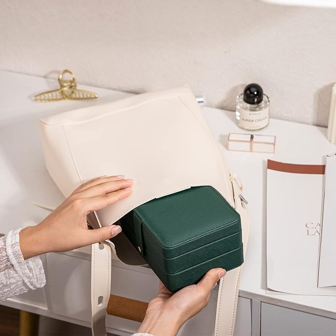 Jewelry Box for Women and Girls, PU Leather Made Jewelry Organizer, 3 Layers Jewelry Storage for Rings, Earings, Necklaces, Bracelets, Valentines Day Gifts (Green+Small)