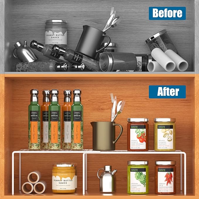 - ✅ 【No Assembly Required】: Simply placed the shelves where needed, no installation or hardware required. When it’s time for a new arrangement, shelves can be moved or removed with no damage to original cabinets or cupboards.