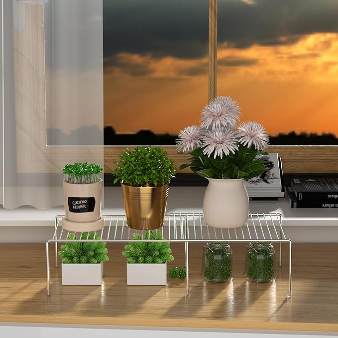 - ✅【Space Saver Help Shelves】: These set of 4 kitchen wire storage racks will create extra level to stack and organizer your cabinets. More effective using your space of cupboard, pantry, countertop, rvs, campers, closet and under a sink. Great for organizing plates, dishes, bowls, cups & coffee mugs.