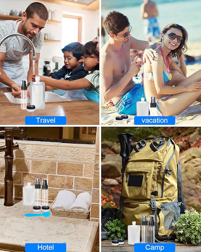 - 【MUST-HAVE Travel Sets】These travel containers for toiletries are compact and lightweight for easy packing into your purse, carry-on, backpack or suitcase. Our travel-size poucehs are reusable, leak-proof, durable and dishwasher safe.