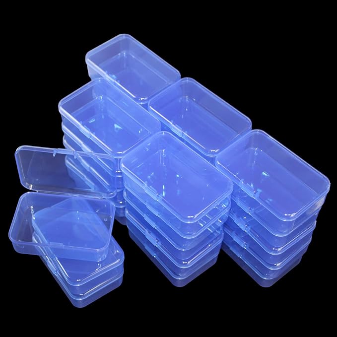 LJY 28 Pieces Rectangular Empty Mini Clear Plastic Organizer Storage Box Containers with Hinged Lids (3.3 x 2.2 x 1 inch, Blue)