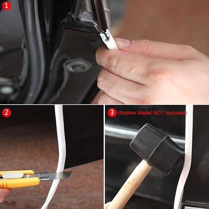 - 【No Glue Required. Protect Against Paint Chips/Door Dings】No worry about hitting and denting neighboring cars. Protects your car doors edges as well as those cars parked next to you. Prevent dings in crowed parking lot. No glue, No messy. Came with microfiber cloth. It helps you to clean door edges before installation