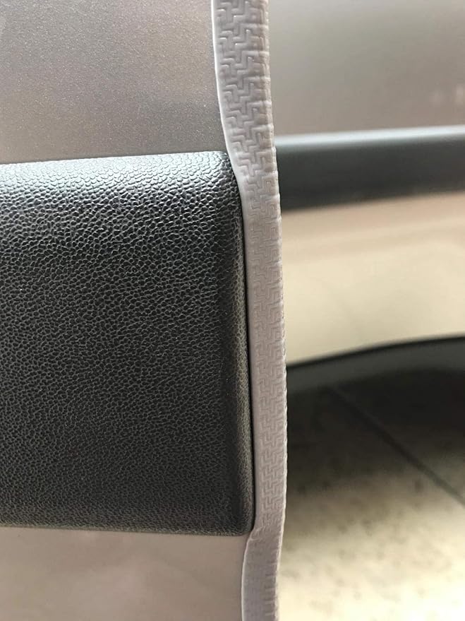 - 【MADE WITH SUPER FLEXIBLE MATERIAL&QUICK AND EASY INSTALLATION】Snip the top with scissors(not included) to reveal the metal clips inside. Made with flexible rubber material. Easily bends along the contours of your doors. Recommend to measure length of your doors before install, then use scissors to cut the edge guards. Could be installed in 15 minutes, much easier if you tap lightly with rubber mallet(not included).