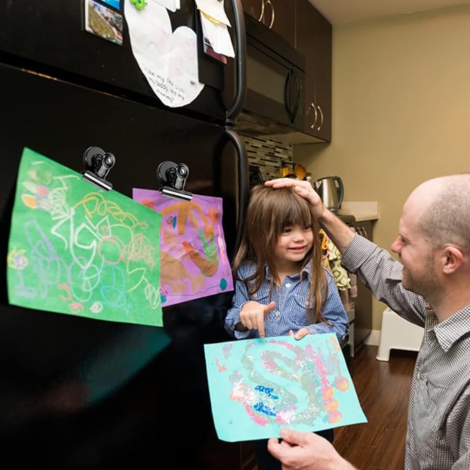 - 【Heavy Duty Metal Clips】Made of high-quality metal with color-printed, rust resistance, it is equipped with a magnet that strong enough to hold 25 sheets of A4 paper together on a metal surface like a dry erase board, fridge.