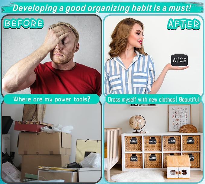 - 【Good-value 54-Piece Organization Kit With Practical Bonuses】- The package comes with plastic basket clip-on labels 20 pcs, white chalk marker 2 pcs and PVC adhesive sticker labels 32 pcs (extra practical bonuses). We're very concerned with your messing problems at home and office. Let's get it solved easily: make this economical purchase and get everthing organized back and create a more functional storage system. This organizing set can meet your daily use and replacement completely.