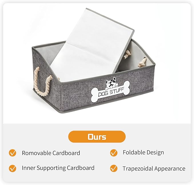 - Premium Quality: The dog toy bin is made of canvas with movable cardboard at the bottom, which is durable, stable, and firm. Sturdy thickened weave ropes can provide soft gripping and are easy to move even with a heavy load.