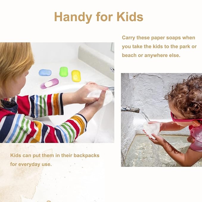 - Ideal for Traveling: Prepare the paper soap sheet in your car, purse, for backpacks and camping, make your hands always feel clean. Great for bathroom emergencies, especially when a public restroom runs out of soap.