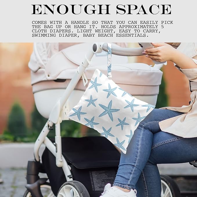 - ๐ ENOUGH SPACE โYou will get 1 wet bags, the size is approx.: 10.2" x 12.6". Comes with a handle so that you can easily pick the bag up or hang it. Each can hold approximately 5 cloth diapers. They are light weight, easy to carry, swimsuit bag, Beach essentials.