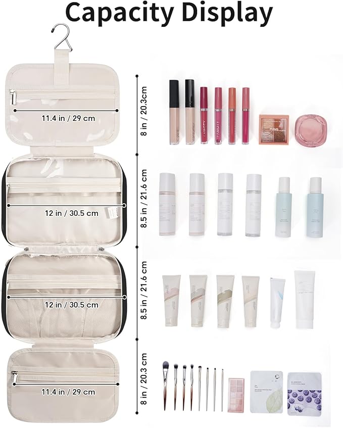 - LARGE VERSION - Fold size 12"x9"x5.5”/30.5x22x13 cm. We launch larger version to meet large-capacity, which you may choose large or medium size based on your needs. It could easily fit full-size travel essentials like shampoo & conditioner, lotion, face wash, toothpaste, toothbrushes, hair brush and daily makeups