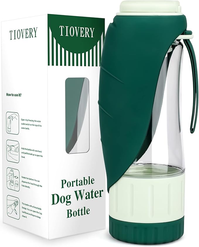 - 2-LAYERS Dog Water Bottle and Food Container: Which can hold 12OZ water and 4OZ food. Enough for taking your small and medium breed dog for outdoor walking, hiking, traveling