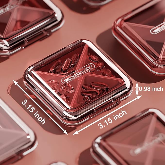 - PORTABLE SIZE: This premium pill holder comes with stylish & clean design, you can carry it around at anywhere with confident! Small size, convenient to carry! You can use this daily portable pill box at home, at work or while traveling. The size of this compact pill box is 3.15 x 3.15 x 0.98inches, it's compact enough, can be easily placed in your wallet, suitcase, backpack, handbag, even your coat pocket.