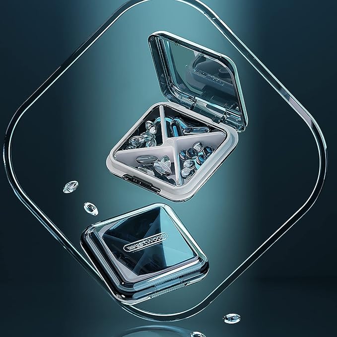 - SAFETY MATERIAL:This pill organizer box is made of solid food grade PP material, that's safe odorless and BPA free, easy to clean, With 4 pill compartments, you can fit a good number of pills in each one.