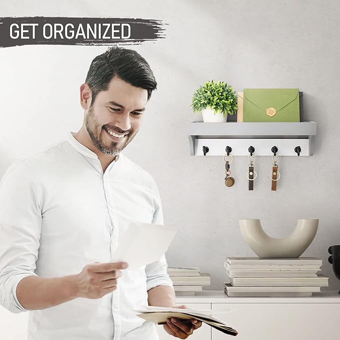 - 【NO MORE LOST KEYS】If you often spend precious hours searching every corner of the house for your keys and suffer from it, let Rebee Vision storage shelf take you out of your misery. Don't hesitate to get one,life will be much easier and organized. For home decoration, this set of key hooks is undoubtedly an invaluable addition.