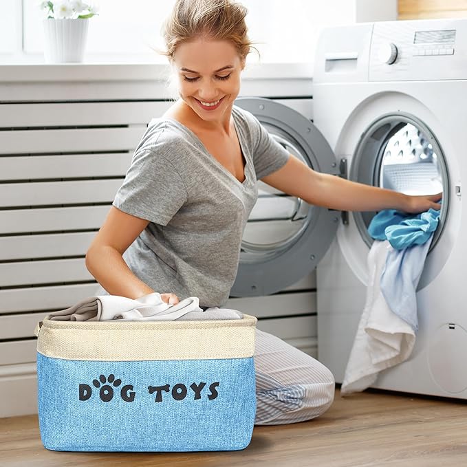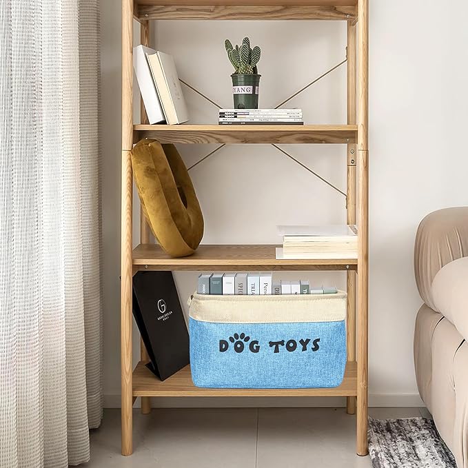 PET ARTIST Dog Toy Basket, Collapsible Dog Toy Bin Box with Comfortable Handles, Large Pet Toy Storage Organizer for Accessories, Toys, Coat & Clothing, Blanket & Leash, Blue, 15"x11"x9"