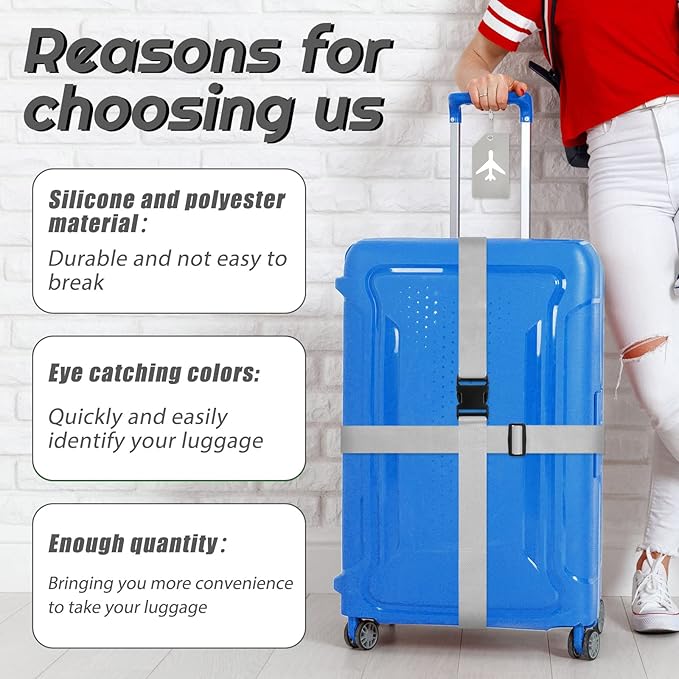 - What You Get: you will receive 4 pieces of luggage straps and 4 pieces of silicone luggage tags with name ID cards, good combinations and sufficient quantity for you to use and replacement while traveling or going on a business trip, bringing you more convenience to take your luggage