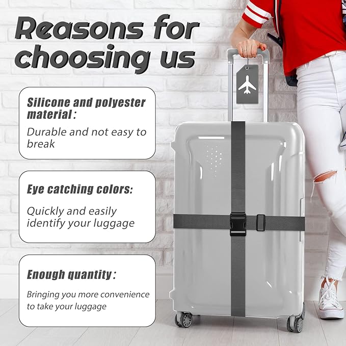 - What You Get: you will receive 4 pieces of luggage straps and 4 pieces of silicone luggage tags with name ID cards, good combinations and sufficient quantity for you to use and replacement while traveling or going on a business trip, bringing you more convenience to take your luggage