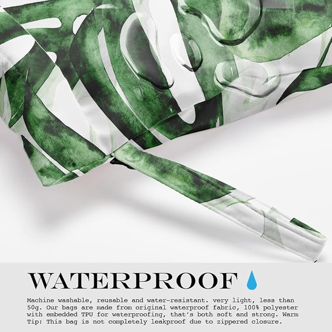- WATERPROOF - Machine washable, reusable and water-resistant. very light, less than 50g. Our bags are made from original waterproof fabric, 100% polyester with embedded TPU for waterproofing, that’s both soft and strong. Warm Tip: This bag is not completely leakproof due to zippered closure.