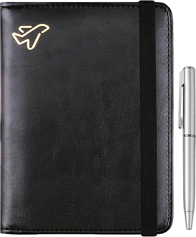 WALNEW Passport Holder for Travel, RFID Passport Cover Wallet for Women Men, PU Leather Passport Book Card Holder Case with Pen, Travelling Essentials for Flying