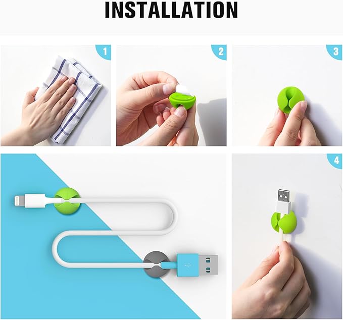 - Easy to install: Remove the protective film, stick the cord organizer, and drain the air from the contact surface. Suitable for a variety of smooth surfaces, like tiles, steel, glass, mirrors, painted wood