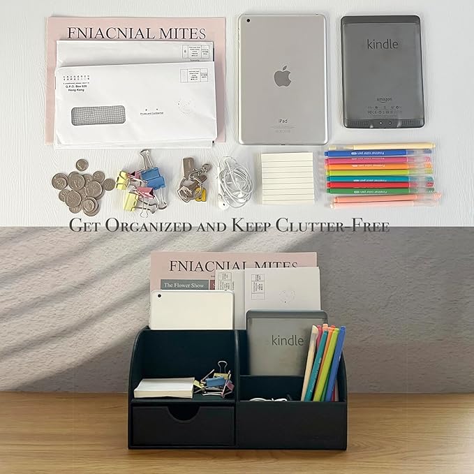 - Efficient Organization: Keep your desk and workspace tidy and organized with this desk organizer that has multiple compartments to store your pens, pencils, phone, remote control, envelopes, cosmetics, scissors and other home or office supplies. With a designated place for everything, you can keep track of all office supplies, and avoid the frustration of misplacing items