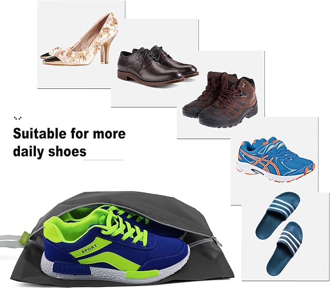 - Perfect for All Your Shoes: The shoe bags measures 16.5 x 4.7 x 8.6 inches and fits most daily shoes like your sneakers, loafers, golf shoes, dance shoes, pointe shoes, stilettos, boots, sandals, heels, slippers. The right size to fit on the closet, shoe racks, and in various suitcases. Great for travel and home use.Perfect organizer for both men and women.Separate your dirty shoes from laundry, shirts or other luggage .