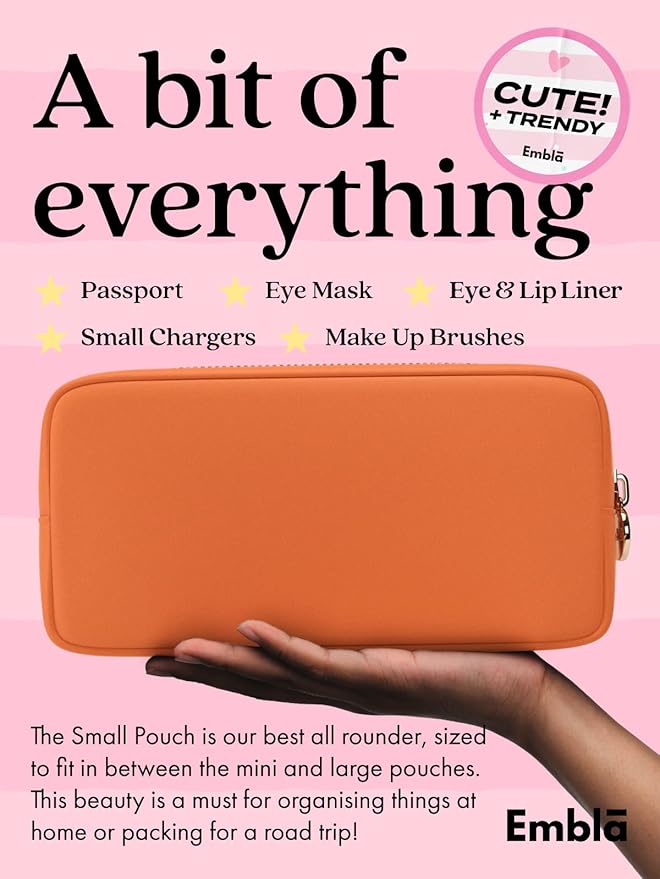 - TRAVEL + CUTE = EMBLA! - Our bags are THE trendy & preppy storage gifts! Simply pick your size (Mini, Large or XL) and start organizing all of your makeup, lipstick, hair stuff, snacks and jewelry accessories! Or use it as a clutch handbag, makeup brush holder, skin care bag, zippered carry case or coin purse wallet!
