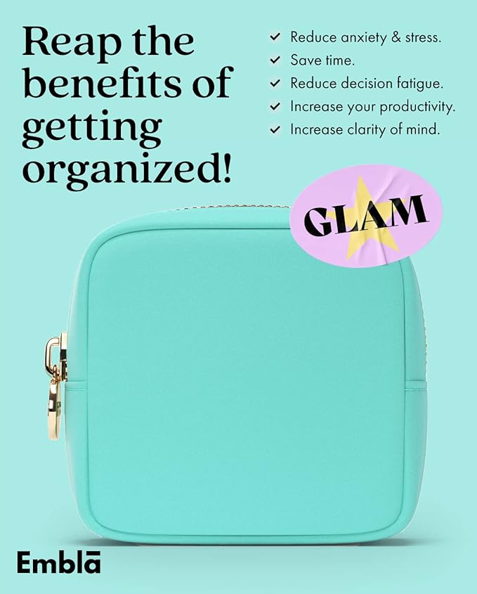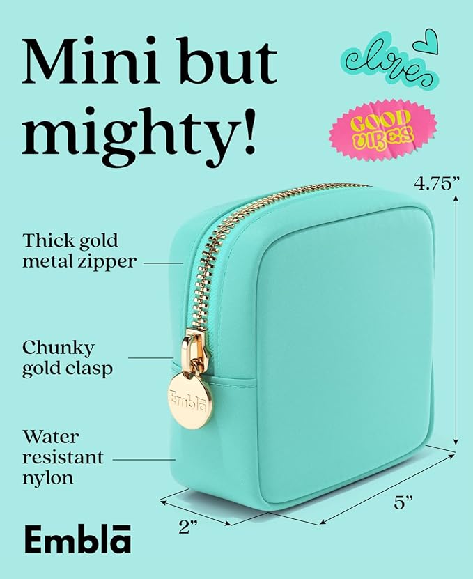 - TRAVEL + CUTE = EMBLA! - Our bags are THE trendy & preppy storage gifts! Simply pick your size (Mini, Large or XL) and start organizing all of your makeup, lipstick, hair stuff, snacks and jewelry accessories! Or use it as a clutch handbag, makeup brush holder, skin care bag, zippered carry case or coin purse wallet!
