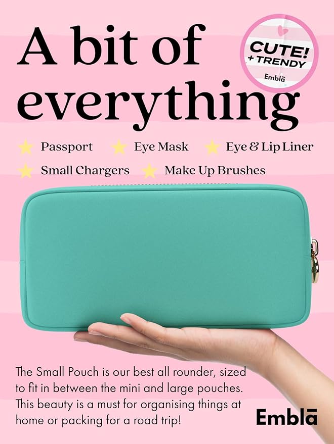 - TRAVEL + CUTE = EMBLA! - Our bags are THE trendy & preppy storage gifts! Simply pick your size (Mini, Large or XL) and start organizing all of your makeup, lipstick, hair stuff, snacks and jewelry accessories! Or use it as a clutch handbag, makeup brush holder, skin care bag, zippered carry case or coin purse wallet!