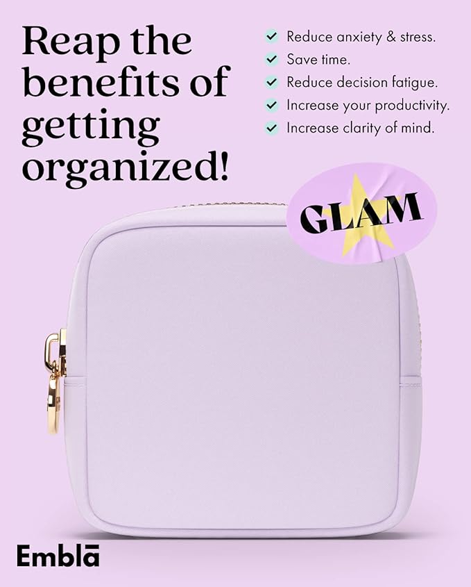- TRAVEL + CUTE = EMBLA! - Our bags are THE trendy & preppy storage gifts! Simply pick your size (Mini, Large or XL) and start organizing all of your makeup, lipstick, hair stuff, snacks and jewelry accessories! Or use it as a clutch handbag, makeup brush holder, skin care bag, zippered carry case or coin purse wallet!