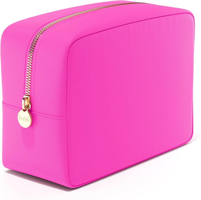 Embla Makeup Bag Travel Cosmetics Pouch and Toiletry Bag, Nylon Zipper Pouch Purse, Cute Make Up Organizer Storage Tote for Women Girls, Travel Skincare Case, Large Makeup Bags, Bubblegum