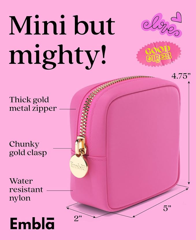 - TRAVEL + CUTE = EMBLA! - Our bags are THE trendy & preppy storage gifts! Simply pick your size (Mini, Large or XL) and start organizing all of your makeup, lipstick, hair stuff, snacks and jewelry accessories! Or use it as a clutch handbag, makeup brush holder, skin care bag, zippered carry case or coin purse wallet!