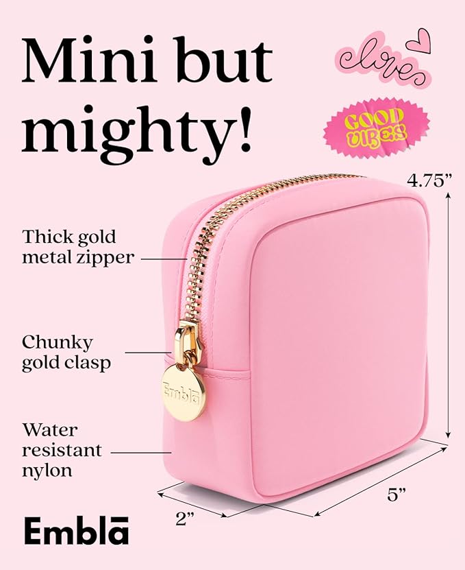 - TRAVEL + CUTE = EMBLA! - Our bags are THE trendy & preppy storage gifts! Simply pick your size (Mini, Large or XL) and start organizing all of your makeup, lipstick, hair stuff, snacks and jewelry accessories! Or use it as a clutch handbag, makeup brush holder, skin care bag, zippered carry case or coin purse wallet!