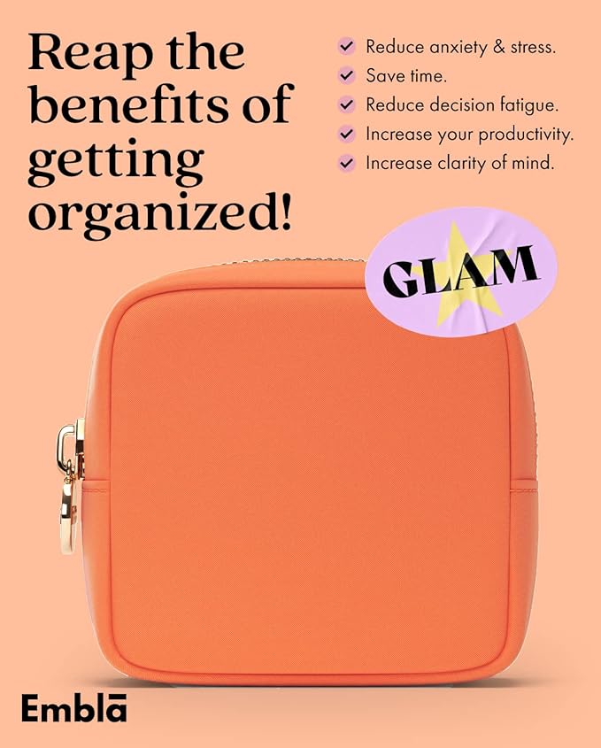 - TRAVEL + CUTE = EMBLA! - Our bags are THE trendy & preppy storage gifts! Simply pick your size (Mini, Large or XL) and start organizing all of your makeup, lipstick, hair stuff, snacks and jewelry accessories! Or use it as a clutch handbag, makeup brush holder, skin care bag, zippered carry case or coin purse wallet!