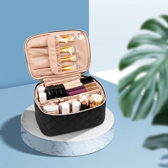 - Separate Brushes Compartment - Travel makeup bag comes with a separate space to hold your brushes and protect them from dust. Good travel makeup bags for women
