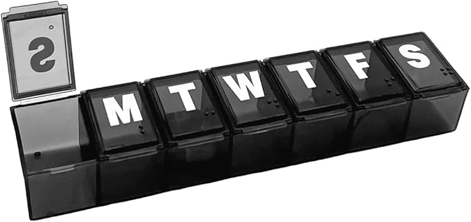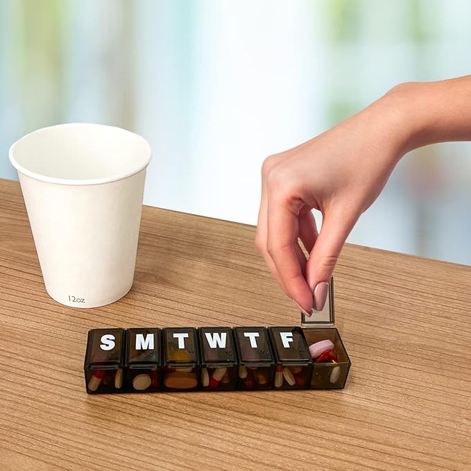 Amazon Basic Care Weekly (7-Day) Pill Organizer, Vitamin Planner, And Medicine Box, Medium Compartments, Black