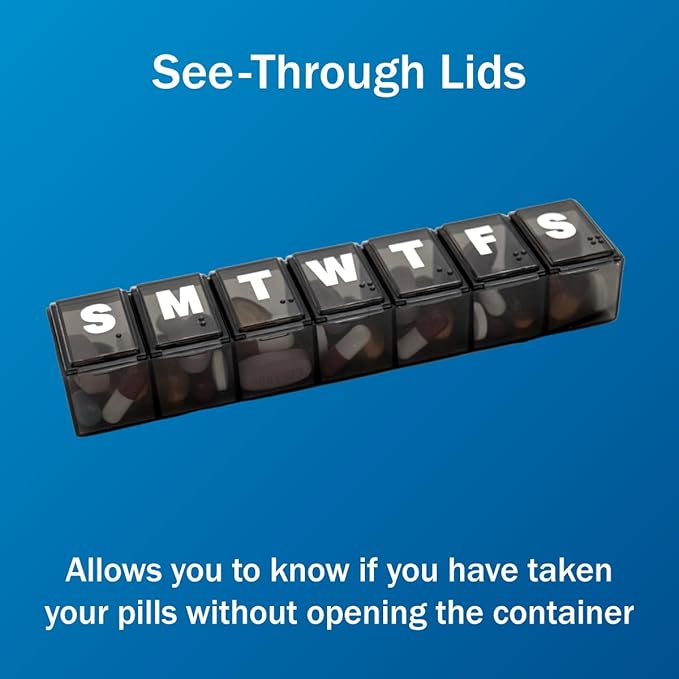 - PILL CAPACITY: Holds up to 22 pills per compartment (aspirin-sized)