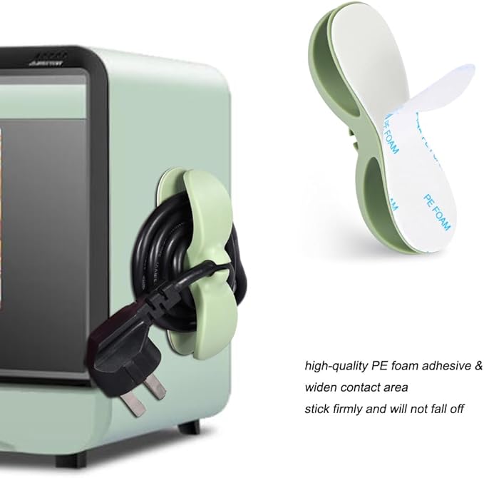 - SMALL BODY BIG ROLE: This small cord organizer for appliances keeps the messy wires neatly and orderly stick on the appliance. Not only avoids the entanglement of wires when many machines are together, not clear which plug corresponds to which machine, but also avoids the safety risk that the plug may get wet when it is on the kitchen countertop. The bow shape of the cable organizer is also beautiful. It will make your work in the kitchen more efficient and comfortable.