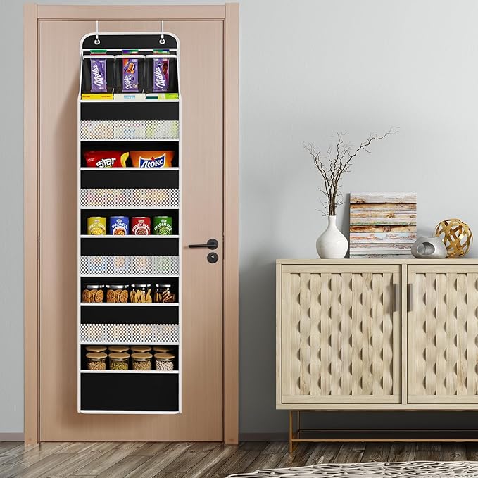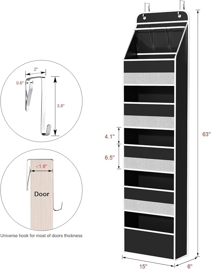 - 【Easy Installation】With two thickened metal hooks and four bottom plates included, installed in just three simple steps. The adjustable metal hooks have a flexible clip can be adjusted to fit most doors, it will automatically applying slight pressure to the door to firmly secure it in place. Designed to fit doors of 1.57-1.77 inch thick.