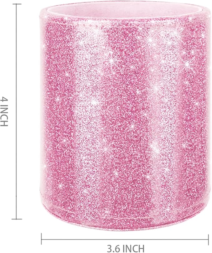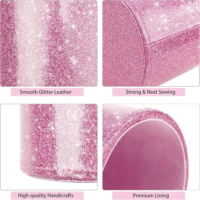 WAVEYU Glitter Pen Holder for Desk, Cute Pencil Cup Pink for Women Girls, Luxury Makeup Brush Holder Large Pu Leather Multi-Functional Organizer Cup for Office, Classroom, Home, Glitter Pink