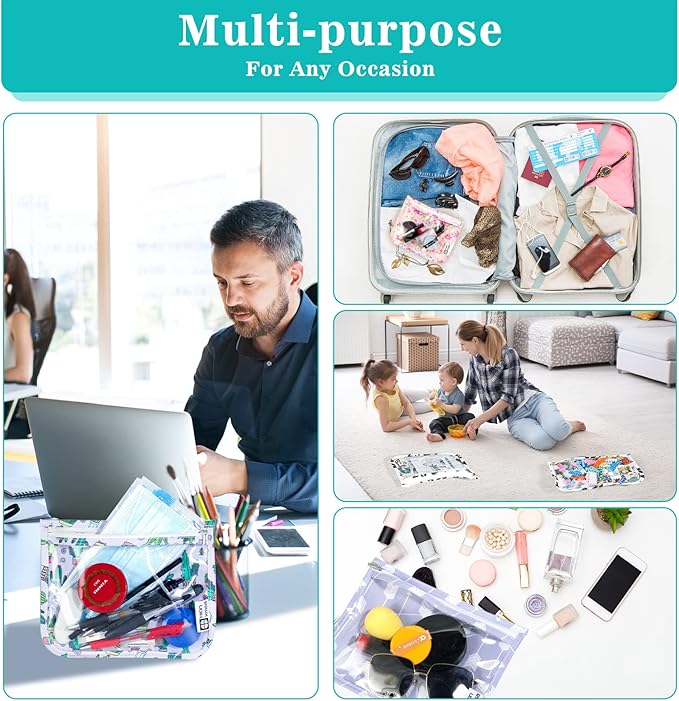 - 100+ USES IN FUN: Who says packing has to be boring? Our versatile travel pouch set with playful pattern make your organizing super simple and enjoyable. Compact design in ultra-light takes up very little room in your luggage, playful prints that both kids and adults love! It is perfect to get the clear travel bag for toiletries and cosmetics, also great as a diaper bag organizer to store baby stuff,toys,misc,first aid. Whether home or outing, it is stylish and well-organized for all busy bags.