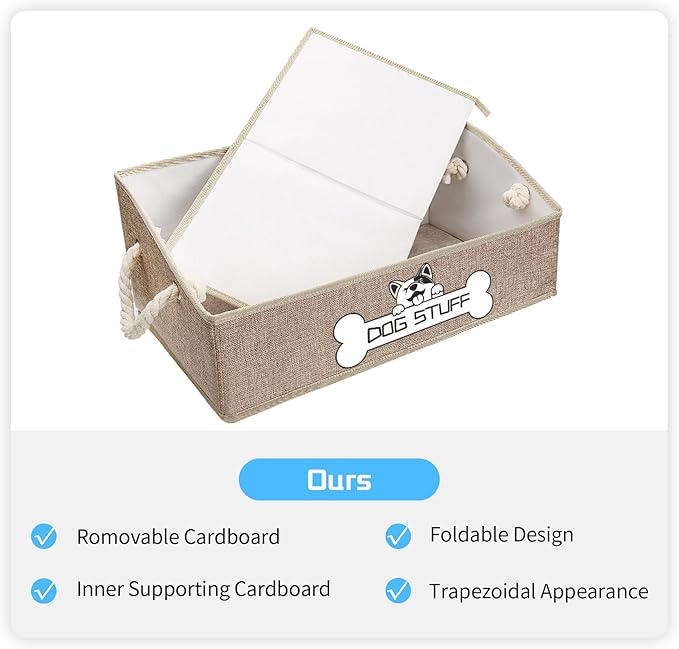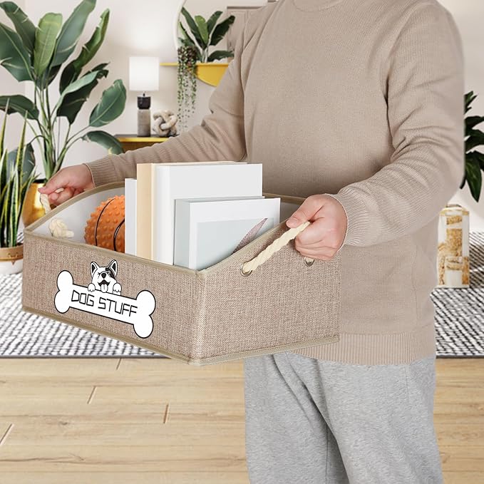- Premium Quality: The dog toy bin is made of canvas with movable cardboard at the bottom, which is durable, stable, and firm. Sturdy thickened weave ropes can provide soft gripping and are easy to move even with a heavy load.