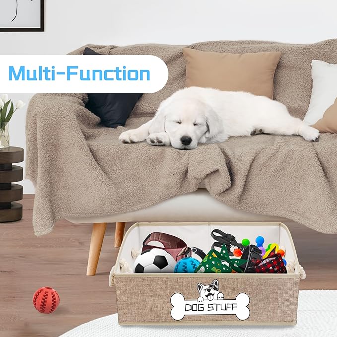 - Large Capacity: The dog toy box has a size of 19.5 (L) x 11 (W) x 8.5 (H) inches, which has a large space for many of your pet's accessories and keeps your room clean and clutter free. It can easily hold dog toys, collars and etc.