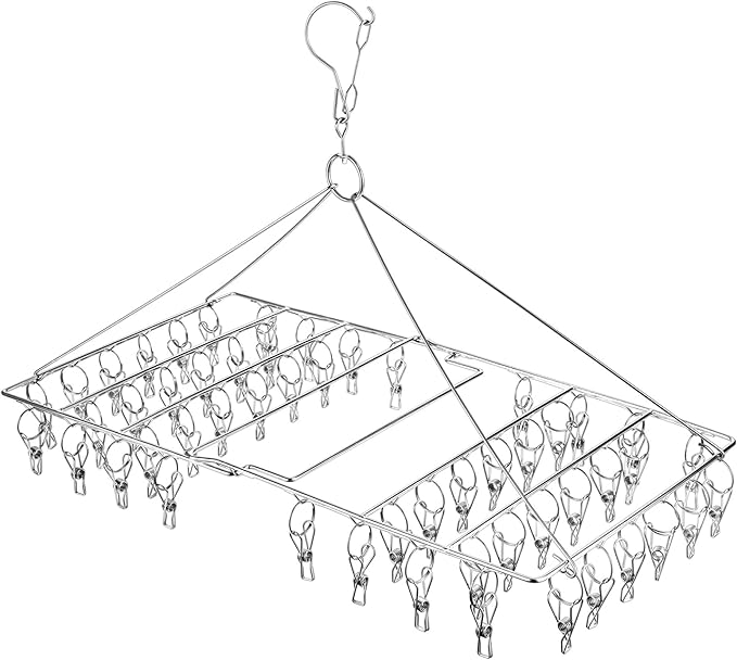 46 Clips Sock Dryer Folding Stainless Steel Space-Saving Drying Rack for Sock, Underwear, Baby Clothes and Small Laundry Items